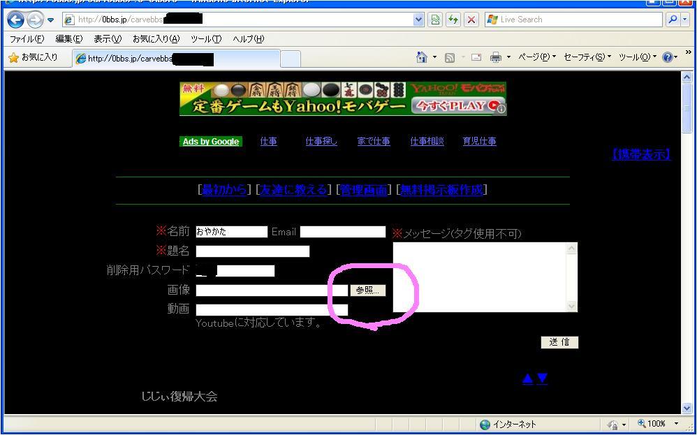 ピンクで囲んだ「参照」をクリックして画像が保存されているフォルダまでいって
