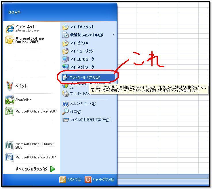 OSはXPです。VISTAやWIN7は少し画面が違うかもしれませんが、要領は同じです。